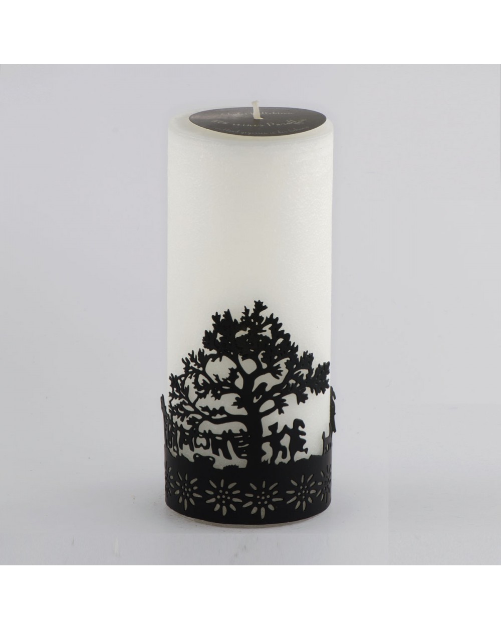 Bougie blanche avec support métallique noir style découpage (interchangeable)