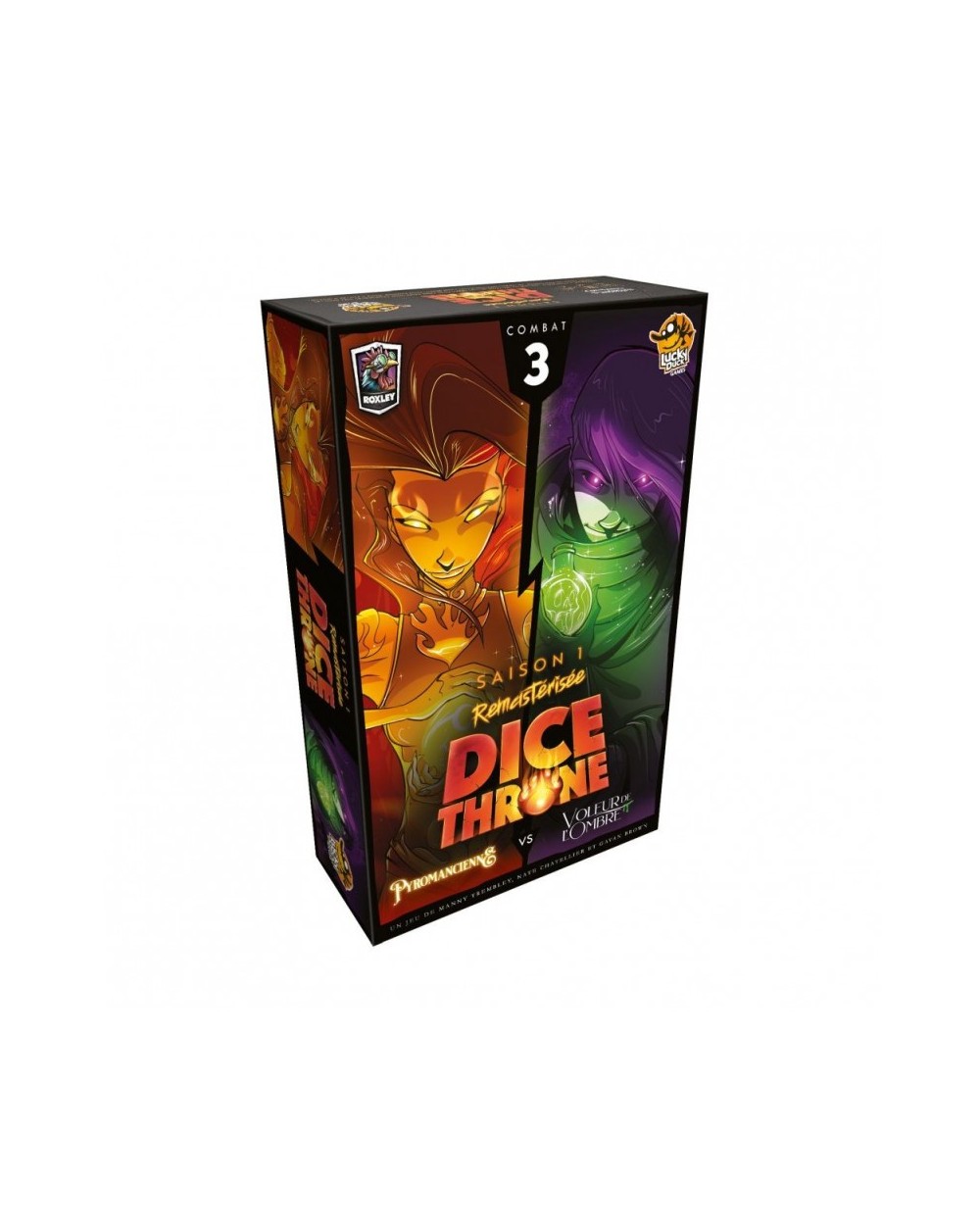 Jouez avec le feu (littéralement) contre les ombres. Ces 2 personnages proposent à un joueur débutant d'incarner la pyromancienne et son adversaire, plus aguerri, de faire danser les ombres dans un combat sans merci! Ces 2 héros de l'univers de Dice Throne sont très puissants mais restent équilibrés avec tous les autres personnages de la gamme!