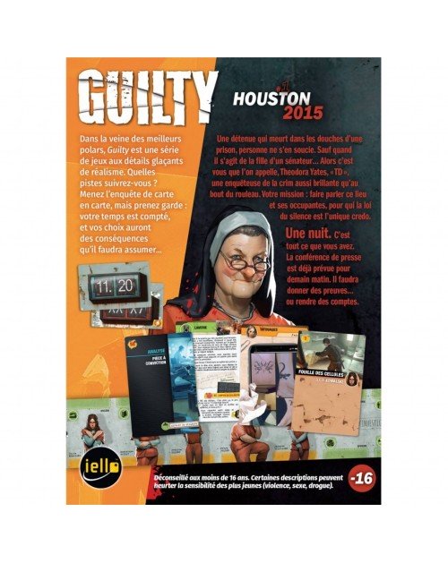 Idée du jeu : Guilty est une nouvelle collection de jeux d’enquêtes ! Dans la veine des meilleurs Polars, Guilty est un jeu immersif qui s’appuie sur des détails glaçants de réalisme. Vous avez une nuit pour effectuer votre enquête à l’intérieur de la prison du comté avant la conférence de Presse. Interrogez les témoins, suivez des pistes et fiez-vous à votre instinct !