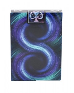 Idée des cartes : Perdu dans l’espace ! Vous allez vous perdre complètement dans l’espace avec ce jeu de cartes magnifiquement illustré. Les cartes à jouer Bicycle® Stargazer sont inspirées de l’un des objets les plus mystérieux et les plus impressionnants de la galaxie : le trou noir. Le design, les couleurs et les symboles sont inspirés des nuages tourbillonnants qui entourent le trou noir. Ce jeu appartient à la collection Bicycle Cratives.