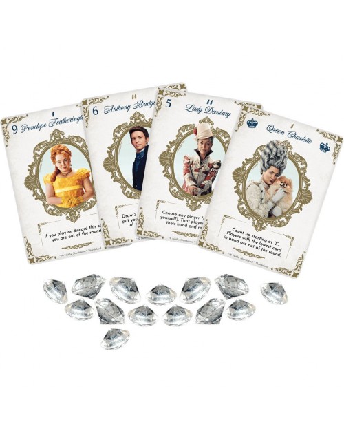 Idée du jeu : Amis lecteurs, les derniers potins divulgués par Lady Whistledown ont mis la cour en émoi. La Reine veut à tout prix découvrir l'identité de l'indiscrète. Dans ce jeu, c'est à vous de démasquer Lady Whistledown. Vous gagnerez également des diamants et parviendrez peut-être même à attirer l'attention de la Reine.