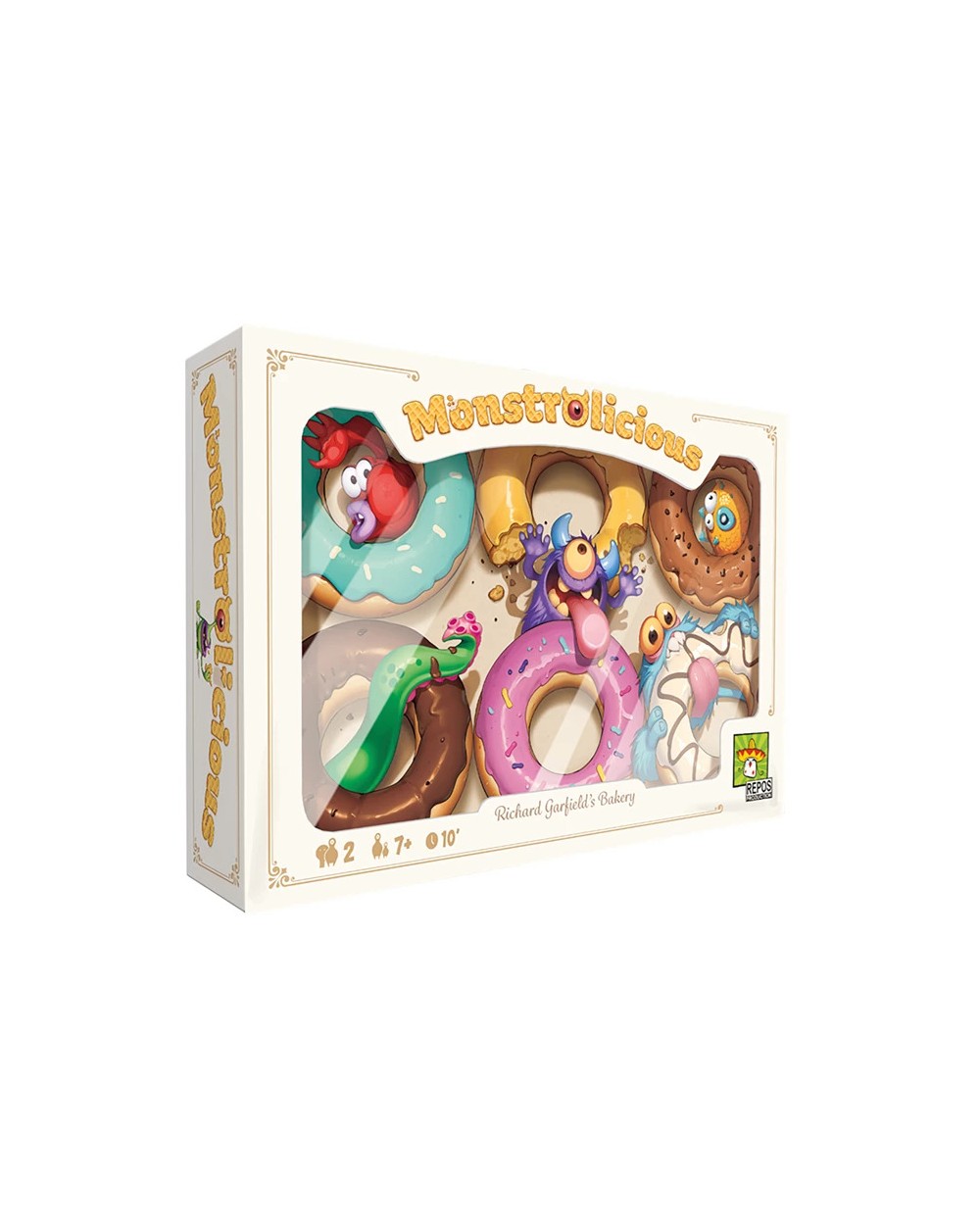 Un joueur contrôle les poilus tandis que le second contrôle les écailleux. Un plateau banquet de pâtisserie est placé entre les joueurs. À votre tour, regardez la première tuile de votre pioche de monstres et placez-là, face cachée, sous l’un des desserts. L’adversaire n’a personne en face ? Vous contrôlez ce délice, sinon, il y a bataille ! Votre opposant révèle sa tuile, pas vous, si votre monstre a une valeur égale ou plus élevée, dites-lui et sa tuile est défaussée. Sinon, c’est vous qui enlevez votre tuile, tout en laissant celle de l’adversaire visible. Attention, si vous tombez sur le piège de l’adversaire, vous perdez automatiquement ! Certains desserts ont des effets spéciaux, comme la sucette, qui ne vaut qu’un point, mais permet de gagner les égalités (même lorsque c’est vous le défenseur !). Quand toutes les tuiles ont été jouées, chaque joueur fait le total des points rapportés par les gâteaux qu’il contrôle pour déterminer le vainqueur. Le plus gourmand sera le meilleur stratège et bluffeur !