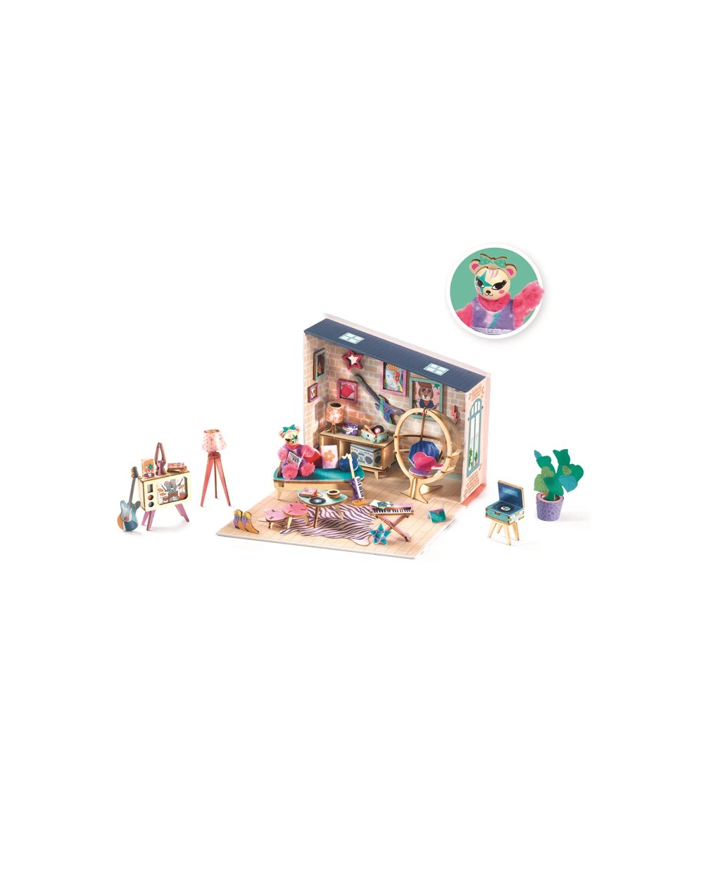 Idée du bricolage : Univers miniature et son petit habitant à créer, pour s'initier de manière ludique à l'activité d'assemblage de maquette. Pratique : tous les meubles et accessoires tiennent dans la maisonnette fermée.