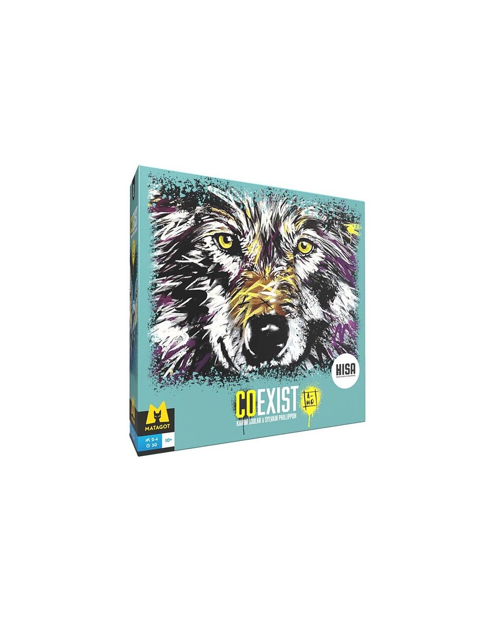Idée du jeu : Coexist est axé sur des mécanismes de draft et de gestion des ressources. Partout dans le monde, de nombreuses espèces sont menacées d'extinction totale. En tant que dirigeant d'une organisation non gouvernementale, votre mission est de préserver autant d'espèces animales que possible et de veiller à ce qu'elles prospèrent dans leur habitat naturel. Mobilisez vos équipes de soigneurs, relâchez les animaux dans la nature et offrez-leur un refuge sûr dans votre sanctuaire. La réputation de votre organisation est en jeu ! Libérer des animaux dans la nature vous rapporte des points et débloque des compétences spéciales, mais vous devez reconnaître vos limites et éviter de surestimer les capacités de votre équipe. Le premier joueur à libérer cinq espèces dans la nature déclenche la fin de la partie, puis le joueur avec le plus de points remporte la victoire.
