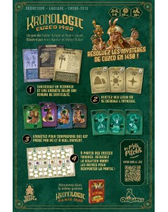 Idée du jeu : Démêlez une série d’affaires inexpliquées et rétablissez la vérité. Récupérez des indices sur les déplacements des personnages de l’intrigue, en déterminant à quel endroit ils se trouvaient au moment des faits. Chacune des enquêtes, à la complexité variable, mettra à l’épreuve votre perspicacité et vos compétences de déduction logique. Votre objectif : résoudre chaque mystère avant les autres ! Après Kronologic - Paris 1920, embarquez pour Cuzco 1450. Nouvelle époque, nouveau lieu, nouveaux mystères...