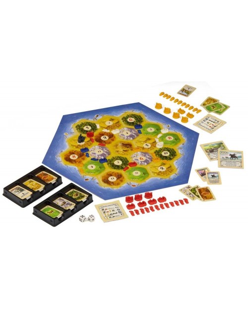 Idée du jeu : Partez à la conquête de nouvelles terres ! Incarnez l'un des premiers colons de l'Ile de Catan. Explorez des territoires riches en ressources, commercez, construisez des routes et fondez des colonies qui deviendront par la suite de somptueuses villes.