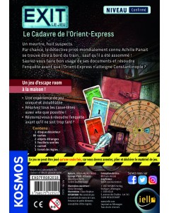 Réunissez vos amis, ouvrez une boîte d'Exit et partagez une aventure intense et haletante. Explorez attentivement les lieux et résolvez ensemble les énigmes qui vous permettront peu à peu de progresser vers la sortie. Faites preuve de concentration et d’imagination : chaque situation est unique ! Plus vous coopérerez, plus vous aurez de chances de franchir les étapes tortueuses du scénario dans le temps imparti.