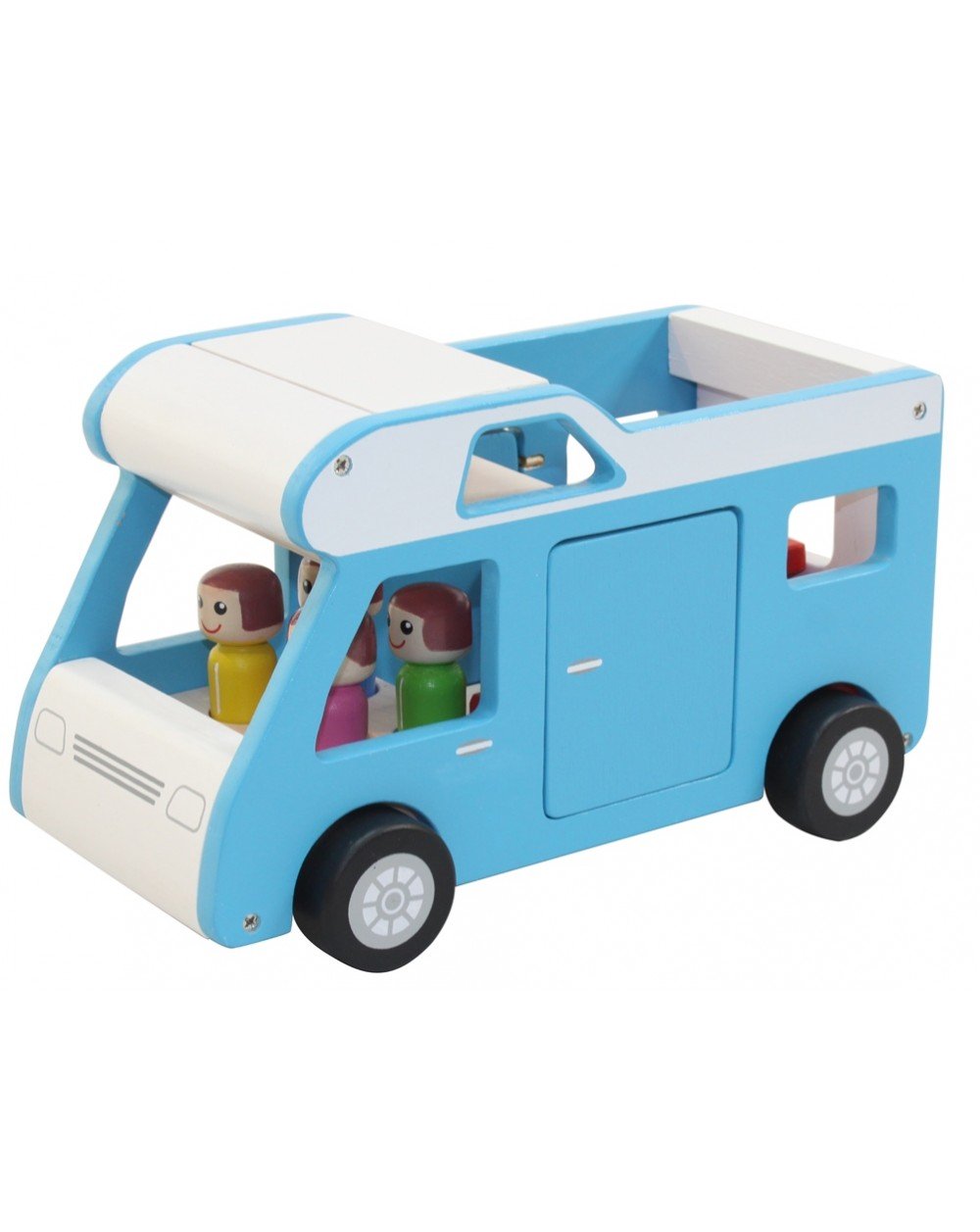 Dès 3 ansCamping car en bois avec accessoires et personnages.