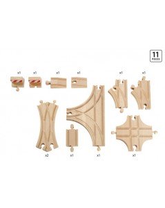 Procédez à l’extension de votre chemin de fer en bois BRIO et orientez votre train vers de nouvelles directions grâce à cet assortiment de rails : aiguillages et accessoires.