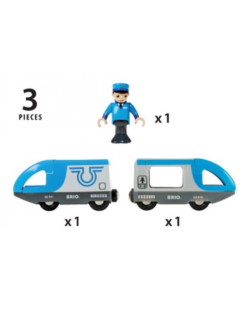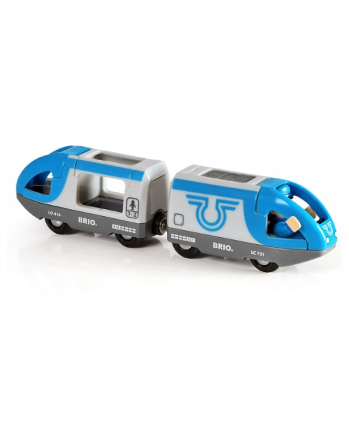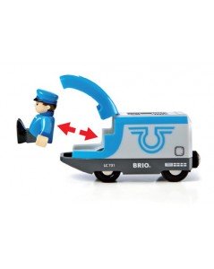 Ce train à pile moderne sillonne l’ensemble du réseau de chemin de fer BRIO. Le conducteur s’installe confortablement à l’avant prêt à emmener les voyageurs vers de nouveaux horizons. Laissez votre imagination vous transporter.