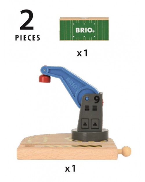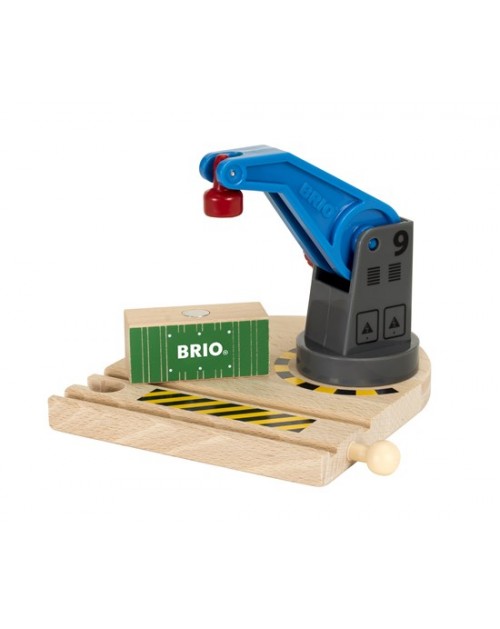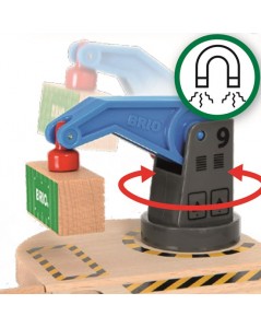 Un train arrive totalement chargé ! Soulevez la charge à l'aide de la grue. Elle peut manipuler des charges vraiment lourdes. Faites pivoter la grue, baissez le bras et déplacez la charge à l'aide de l'aimant jusque dans votre camion en vue de la livraison. Voici déjà le train de fret suivant ! Une version modernisée de la petite grue, une icône BRIO.