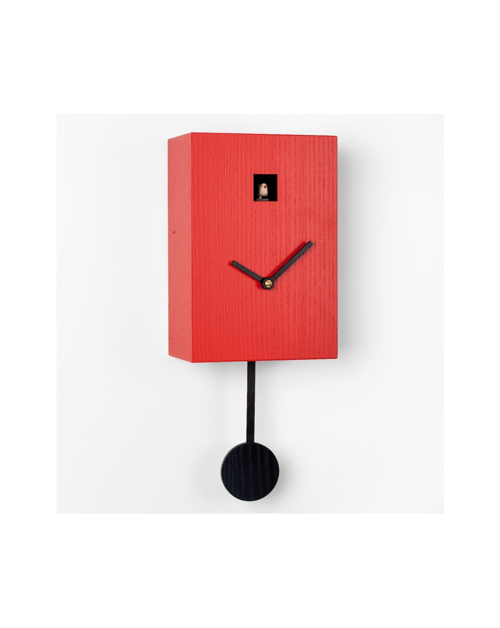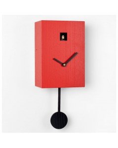 Coucou Hansruedi rouge avec aiguilles et balancier noirs.